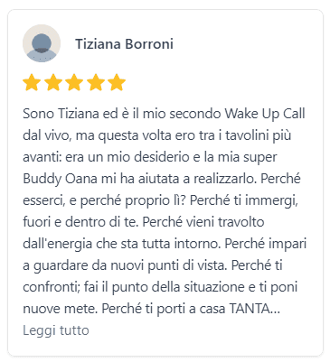 In definitiva, partecipare al Wake Up Call è una vera e propria esperienza di trasformazione personale e finanziaria, che ti aiuterà a superare i limiti che ti impediscono di godere appieno della felicità e serenità che davvero meriti.